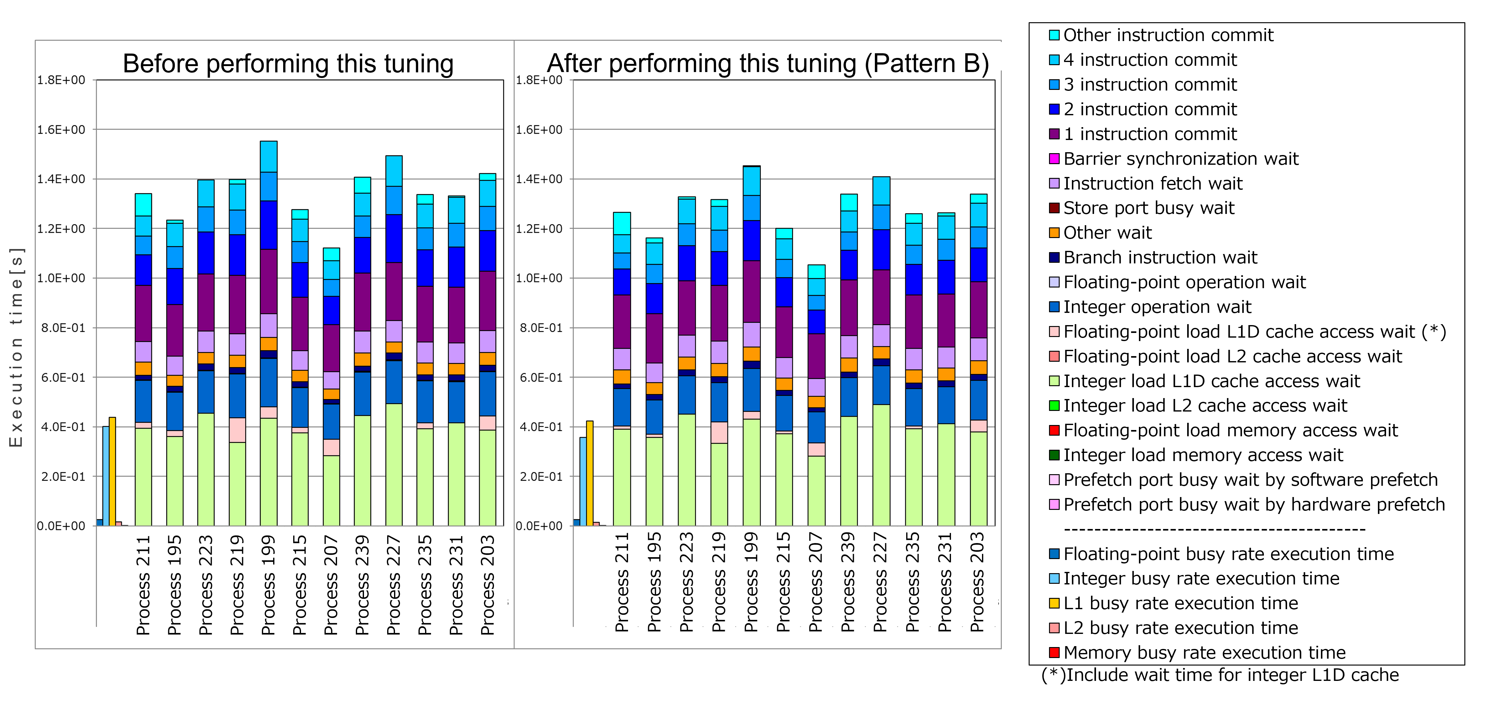 As seen in the graphs above, the execution time of Process 199, which has the longest execution time (the execution time depends on the longest process) among the measurement results both before and after performing this tuning, was reduced from 1.55 seconds to 1.45 seconds, in other words, the performance was improved by about 6%.