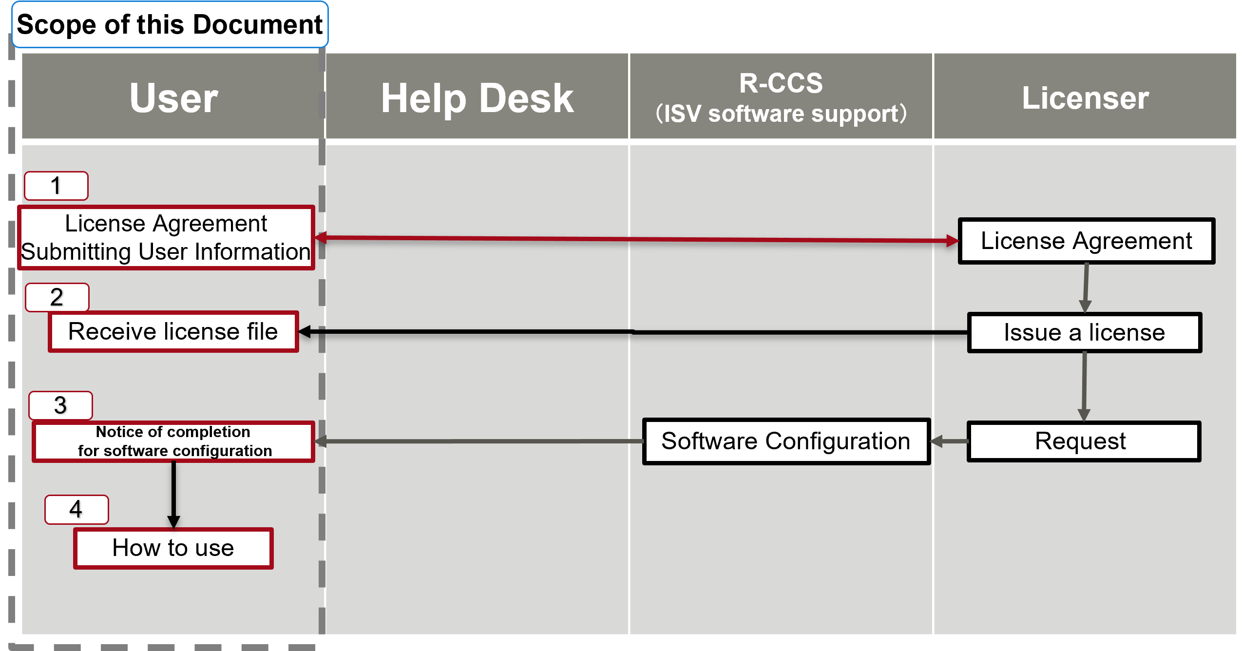 After the software environment settings are completed, the Fugaku Support will send a notice of completion for the software usage environment to the target user.
