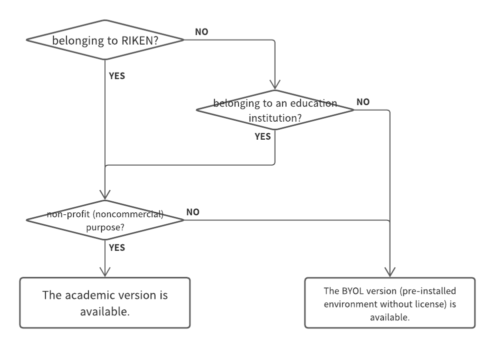 To use the BYOL version, Fugaku users must only bring their own license to the login nodes or the pre/post environment and activates the license by themself. R-CCS does not provide a license.
