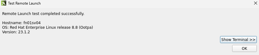 Once the configuration is complete, you can test the connection using the ‘Test Remote Launch’ button. If the connection test is successful, the display will appear as shown in the figure below.