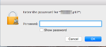 Input the passphrase of the obtained client certificate to Password area, click [OK].