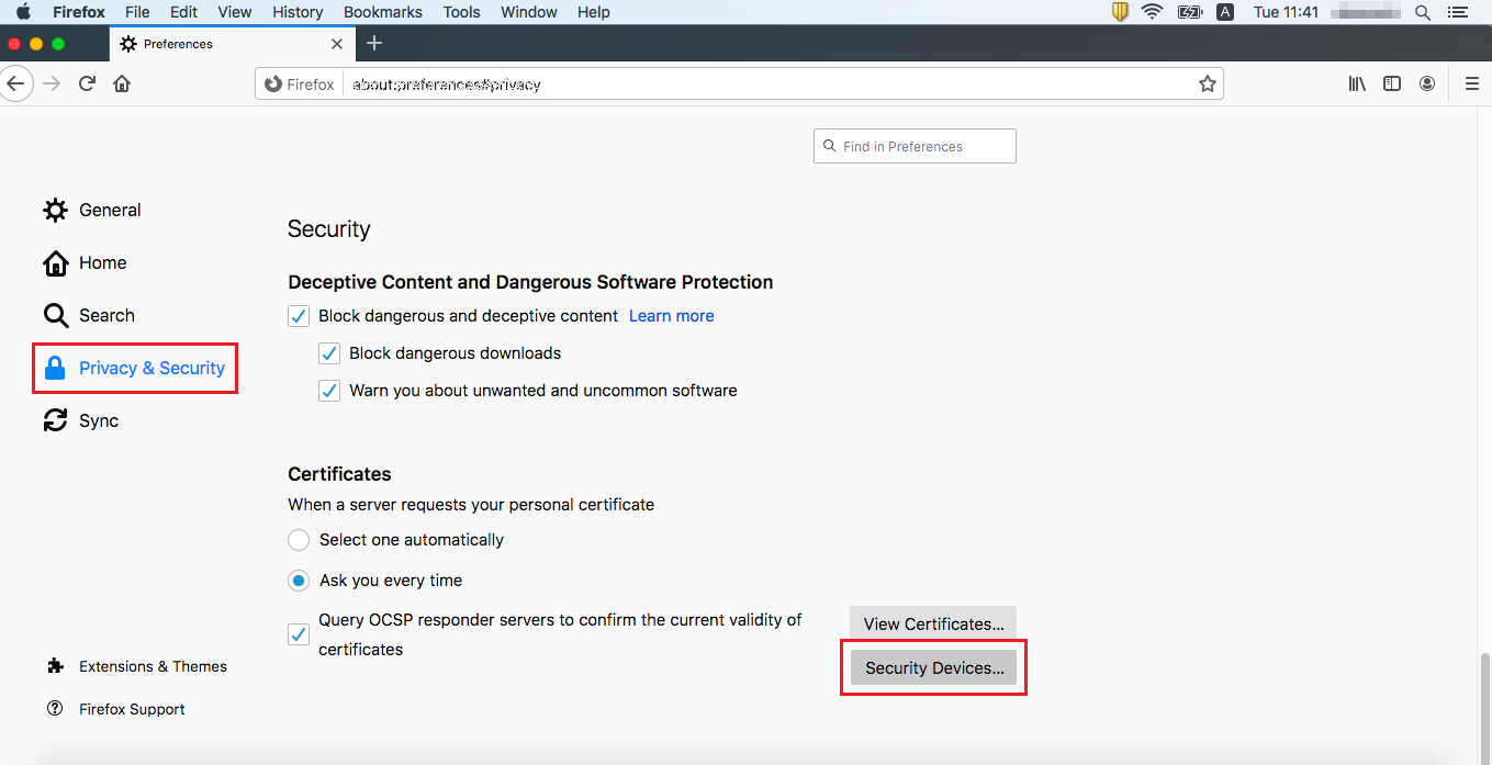 4.2.2. Installing the certificate on Firefox (Mac)¶