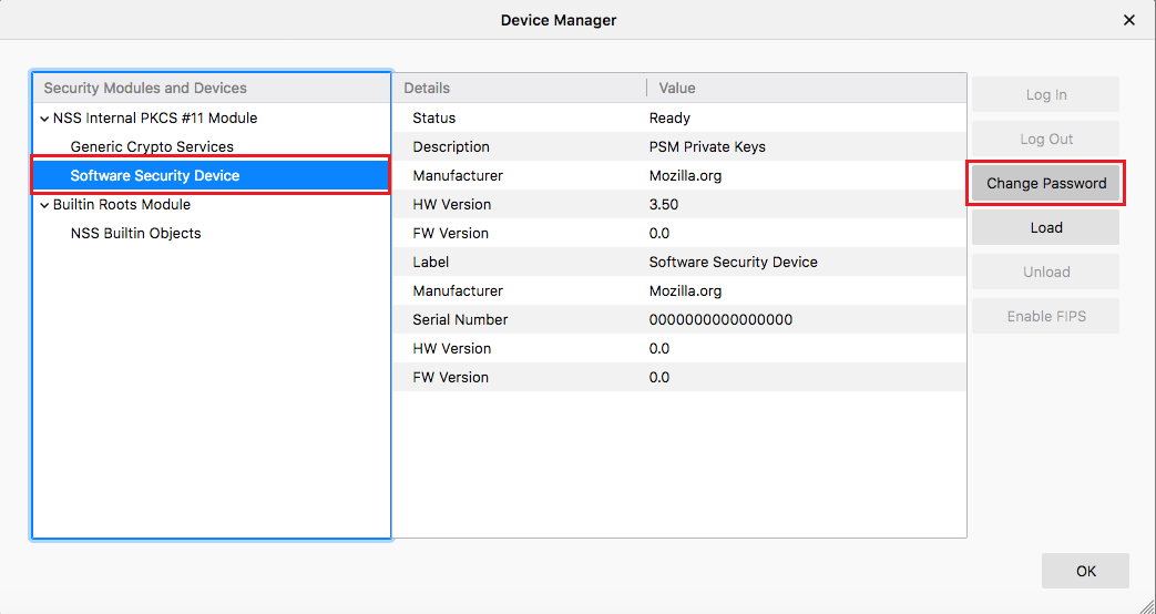Next, set the password to be entered when using the client certificate. Click on Security device….