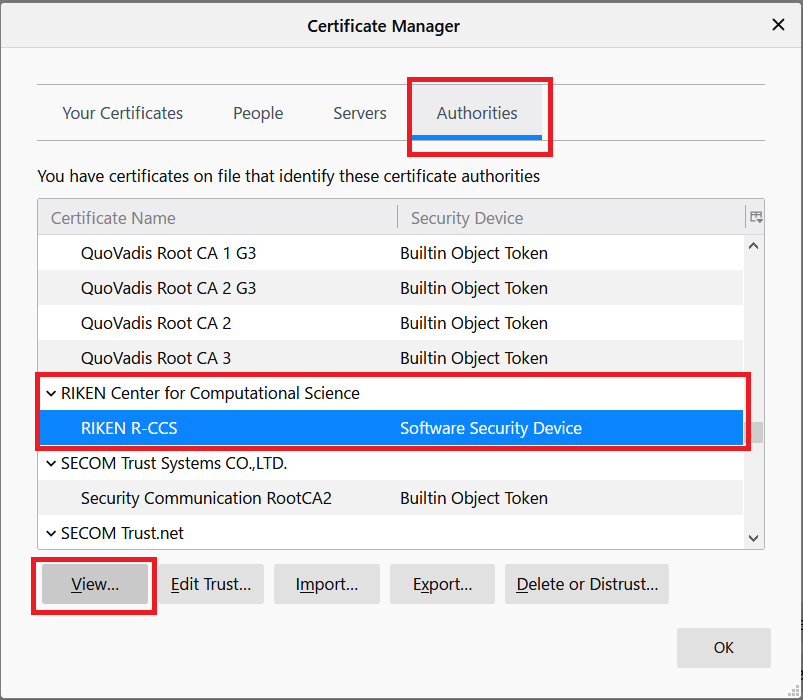 Select [Certificate authority certificate] and from the list, select “RIKEN R-CCS” and click on Display.
